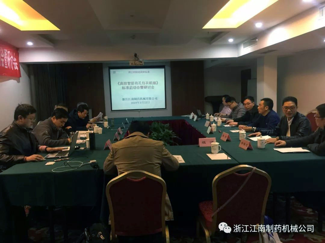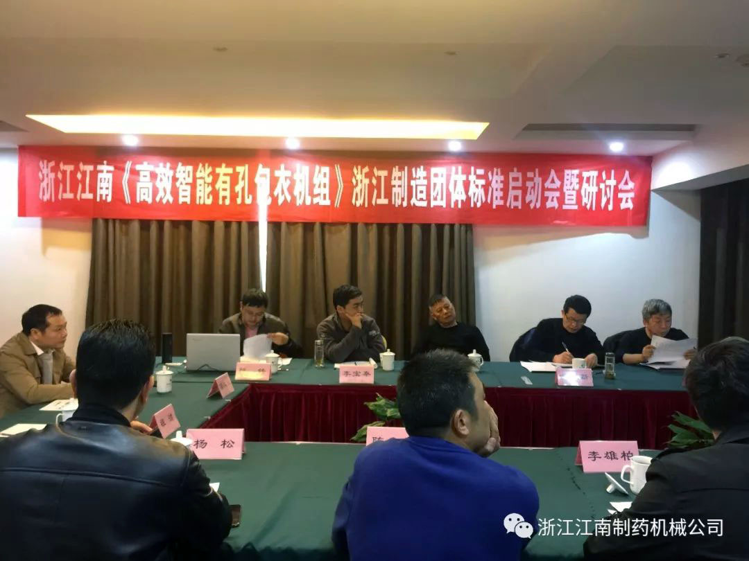 星空官方入口《高效智能滚筒式有孔包衣机组》浙江制造团体标准启动会暨研讨会3月22日(星期五)下午13:30在瑞安华侨饭店召开,为了确保“浙江制造”标准的严谨,会议邀请了全国制药机械标准化技术委员会主任高工李宝秦、华东集团华润制药有限公司高工沈正良、温州市工业设计院教授级高工金建新、温州职业技术学院博士张洁、温州市标准化研究院高级工程师祖洁、瑞安市市场监督管理局高级工程师吴国华、浙江方圆检测集团高级工程师陈锋、瑞安机械行业协会秘书长金普光及我公司董事长杨松、工程师李雄柏、张富等多位专业工程师。工作组专家及成员针对标准草案进行细致而严格的研讨,探讨确定了标准的主要内容及框架,一致肯定了星空官方入口《高效智能滚筒式有孔包衣机组》浙江制造标准的先进性、准确性。