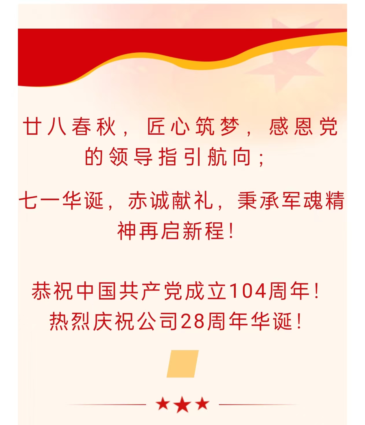 热烈庆祝星空官方入口28周年华诞!